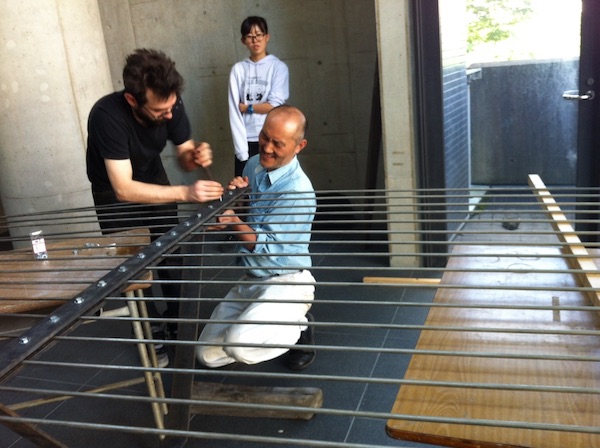 この時の修復は、京都市立芸術大学の彫刻科でやる方がいいということになり、松井先生とマルティさんとでやったわけです、喧嘩しながら(笑)。で、美術学部と音楽学部の学生が手伝った。これは、なかなかないことで、学部を超えて、学生が共同で作業をしました。音響彫刻はビジュアルなものでもあるし楽器でもあるので、両学部の学生にとって、とてもいい経験になったと思います。
