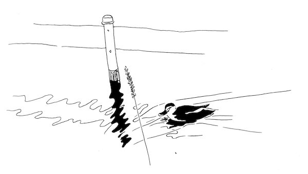 池に沿って遊歩道を歩いてみる。好天が続いていたせいか土はすっかり乾いており、落ち葉はたわんで音を抱えている。池のうしろはどこも傾斜して、住宅地が囲んでいる。皆川典久さん言うところの「スリバチ」だ。そのスリバチの底に鴨が飛来する。空を行く鳥には土地の凸凹が見えているのだろうか、それともただ水面のきらめきを見て降りてくるのだろうか。
