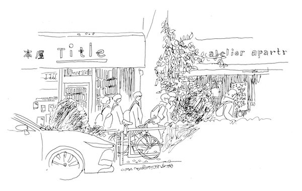 ここからはずっと大通りだ。歩く気がしなくなって、すぐそばの「井草八幡宮」停留所(というアナウンスにも、行きには気づかなかった)からバスに乗る。「八丁」で降りて本屋Titleに着く。今日はもともとはここに来るつもりだったのだ。大通りに面した店頭から一歩中に入ると、店内には詩歌集をはじめ選び抜かれた本が並んでいて、ちょっとオアシスのようなところがある。そこから急な階段を上ると、目の前にバロン吉元描く昭和柔侠伝のめくるめく原画が並んでいた。