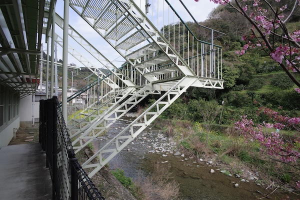 「八幡浜市立日土小学校」東校舎川側の階段(2025年撮影, 愛媛県)