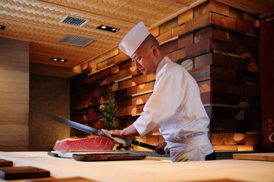 「鮨 銀座おのでら」統括料理長・坂上 暁史が日本から来店し、店舗エントランスに本マグロ柵取りカッティングショーを行います。