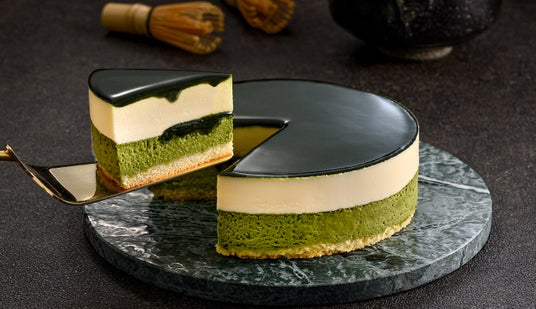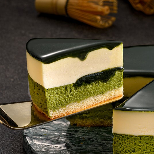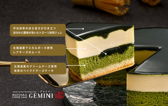 味わいのバランスが進化抹茶ベイクドチーズケーキ、抹茶ジュレ、レアチーズムースの3層が調和し、それぞれの特徴を引き立てながらも一体感のある絶妙な味わいに。