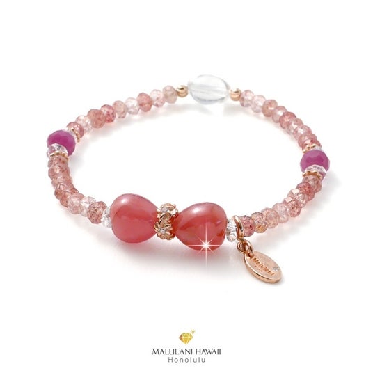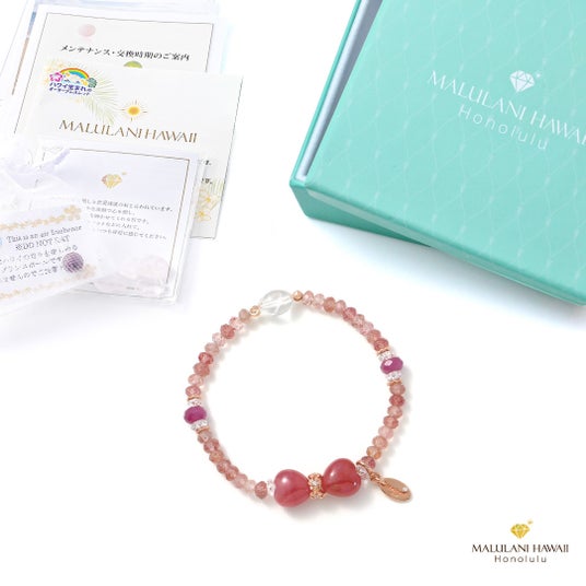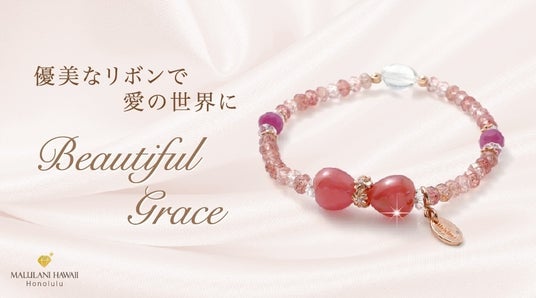 ハワイ発祥の天然石アクセサリーブランド「マルラニハワイ」より、美しく華やかなハート型のインカローズを、プルメリアを連ねたハワイアンジュエリーでリボンに仕立てた、大人のためのパワーストーンブレスレット「ビューティフルグレース」を、多くのリクエストをいただき、数量限定で再発売いたします。