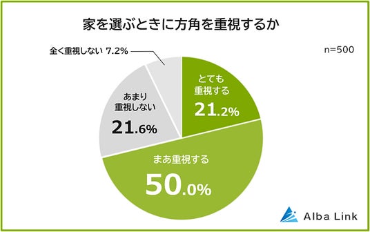 今回、株式会社AlbaLink( https://albalink.co.jp/ )が運営する空き家買取隊( https://akiya-kaitoritai.com/ )は、全国の男女500人を対象に「住みたい家の方角」についてアンケート調査を実施しました。