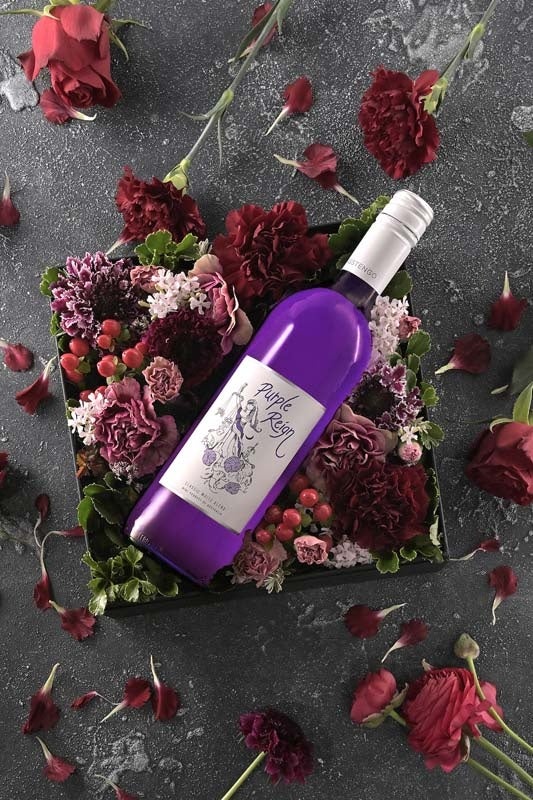 これまでご提供していた【紫ワイン】 Purple Reign(パープルレイン)は辛口ワインでしたが、パープルフレイムは低アルコールでほどよく甘いため、より飲みやすいワインとなっています。「辛口の紫ワインだけでなく、甘口の紫ワインも飲んでみたい!」というお客様のご要望にお応えして、新たにパープルフレイムをお届けいたします。