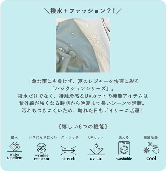 創業70年という長年の卸売り実績から、こだわりの素材と生産ノウハウを活かした人気機能商品だけを揃えたブランドとして、2023年春夏よりオンライン販売を開始したCROSS FUNCTION(クロス ファンクション)。「はじく+ファッション」で人気のシリーズ「ハジクション」から2025年春夏コレクションでは新デザインも含めた4アイテムを発売いたしました。