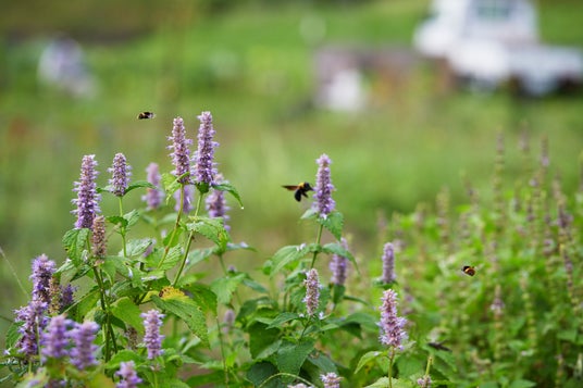 三重県にある自社農園。畑に立ち込めるアニス ヒソップ の甘い香りに蜜蜂が吸い寄せられてきます。