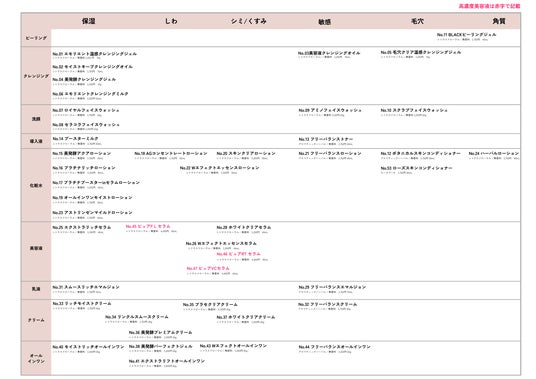 発売するアイテムは9カテゴリー(ピーリング・クレンジング・洗顔・導入液・化粧水・美容液・乳液・クリーム・オールインワン)気になる商品をカテゴリーはもちろん、悩み軸や成などから豊富ランナップ・選び方によって商品をお選びいただけます。