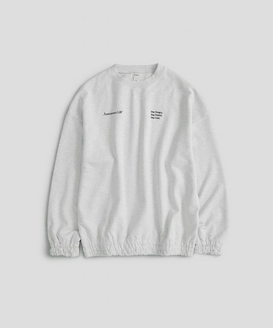 今シーズンは同ブランドを代表する“ORDINALY”を冠したスウェットから、別注アイテムを2型制作して頂きました。デザインは、オープン記念で公開したダメージ加工とは一風変わったシンプルな表情になり、より多くの方々に馴染むようアレンジしました。新たにクッキークリーム味のアイスを彷彿とさせるWHITEを加えた、GREY,BLACKと三色での展開になります。また、今回のコラボレーションを記念して前身頃の刺繍は、現代の巨匠のスピーチを引用したレタリングに変更しております。
