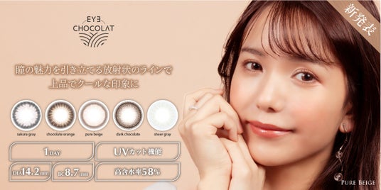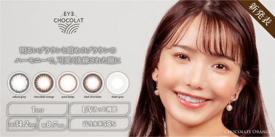 株式会社関吉(本社:大阪市中央区、代表取締役社長:冨岡大地)は、カラーコンタクトブランド「EYE CHOCOLAT(アイショコラ)」より、sakura gray、chocolate orange、pure beige、dark chocolate、sheer grayの5色のカラーコンタクトレンズ(度数:±0.00~ -8.00)を2024年4月1日より販売開始いたしました。