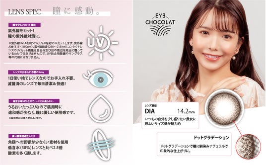 『EYE CHOCOLAT』は目元の魅力をさり気なく際立て、新しい美しさを発見するために考えられた、新しいカラーコンタクトブランドです。