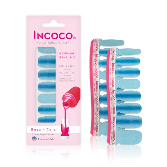 インココはシートが柔らかくて伸張性があるため、優しく伸ばして微調整をしたり指先でカットすることができます。そのためハンドもフットも兼用、同じ商品をそのまま使うことが出来ます。サンダルシーズンには欠かせないフットネイルも、是非インココで手軽にお楽しみください。