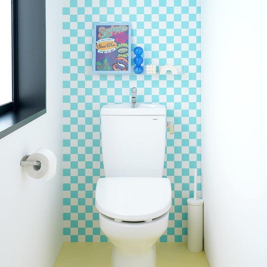 レトロトレ/家具:グランマホーム ダーク、壁上:カフェタイル レイク、腰壁:ペアレンツホーム ダーク