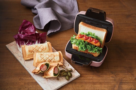 食パン1枚でホットサンドができるホットサンドメーカー。食パンのほか、ホットケーキミックスやパイシートでスイーツ、ごはんを挟んで焼きおにぎりも。コロンとかわいい見た目も好評です。