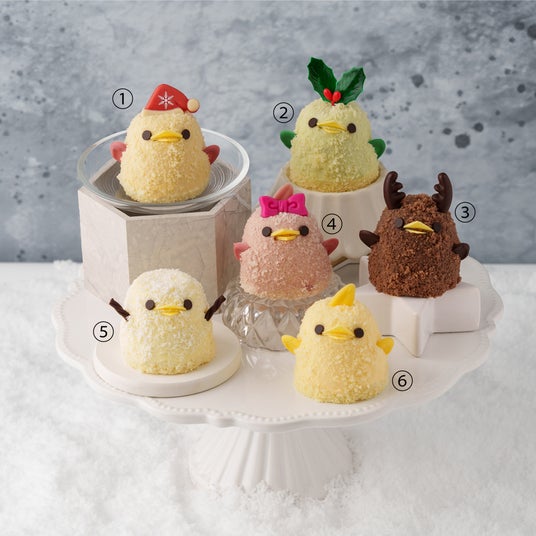 今年も人気のアソートが登場!定番のバニラをはじめ、青りんご、チョコ、いちごなど、全6種類のかわいいぴよりんをお楽しみいただけます。サンタやトナカイに扮したぴよりんたちと一緒に、素敵なクリスマスをお過ごしください。