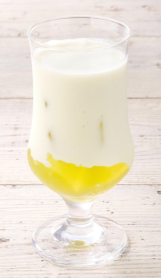 シャインマスカットジュレににマスカットシロップ、ヨーグルトを合わせました。濃厚な味わいでデザートドリンクとしてお楽しみいただけます。
