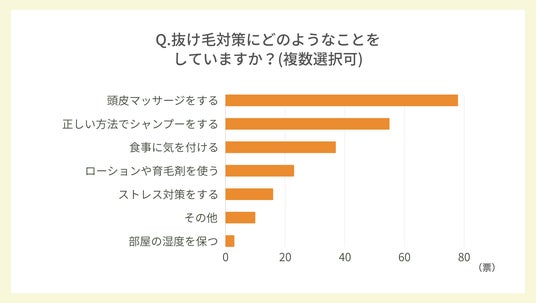 今回、アンケートで皆さんがおこなっている抜け毛対策を伺いました。その結果とともに、秋の抜け毛予防に効果的な方法をご紹介します。