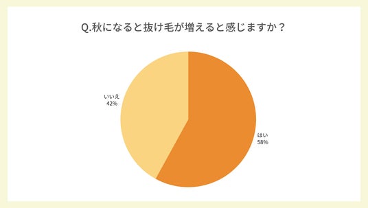 女性300名に「秋になると抜け毛が増えると感じますか?」と質問したところ、「感じたことがある」と答えた女性は58%でした。