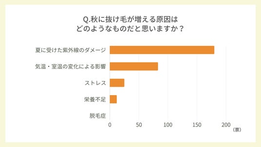 続いて、アンケート対象者全員に「秋に抜け毛が増える原因はどのようなものだと思いますか?」と尋ねました。