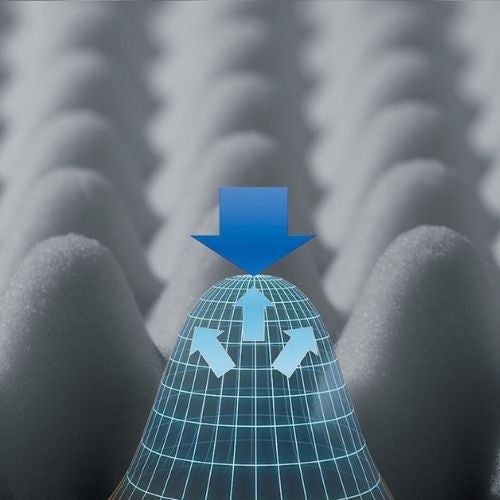 自の凹凸構造が体圧を分散し、血行を妨げにくく、理想的な寝姿勢を保ちます。また、上層の凹凸構造や高通気ウレタンにより、高い通気性を実現。睡眠中蒸れにくく快適にお休みいただけます。さらに上層のウレタンフォームに「Ag+抗菌加工」を施し、寝具業界初となるSIAA認証を取得。側地は「抗菌防臭加工(ポリジン加工)」と、徹底した衛生加工を施しております。