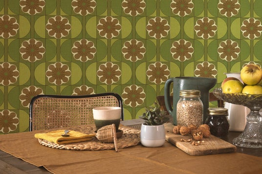 熱視線を浴びているレトロ柄。フリース壁紙でも展開されている、1950年代~1970年代にヨーロッパで販売されていたデッドストック壁紙のデザインを復刻したビンテージ柄と、ノスタルジックなタイル柄、7つのデザインがイージーウォールテープサイズで新登場。