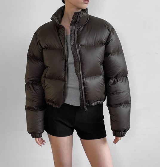 シーズンムードを高めるポケット付きのシンプルな中綿ジャケット。保温性に優れたダックダウンを使用し、ナイロン素材による速乾性と撥水機能を備えています。ボトムとのバランスがとりやすいセミクロップ丈が特徴で、ハイネックラインは防寒性をさらに高めています。また、裾のストリングと2WAYジッパー仕様により、様々なスタイリングが可能です。
