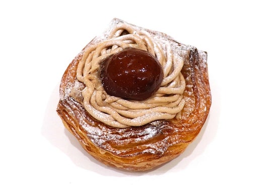 ●〈ルフラン〉渋皮栗のモンブランデニッシュ税込350円/サクサクデニッシュにホイップ、モンブランクリーム、渋皮栗をのせた、栗の魅力が何層にも味わえる一品です。/B2