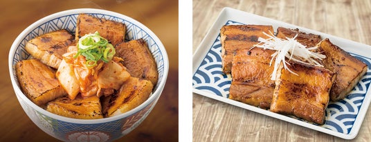 (左)キムチ豚バラ丼〈並〉/(右)豚バラ皿〈並〉