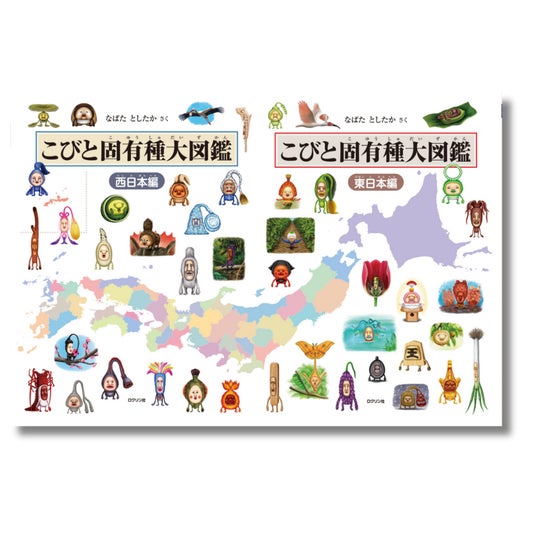 書籍『こびと固有種大図鑑 東日本編』と『こびと固有種大図鑑 西日本編』では、全国47の都道府県それぞれに生息している「固有種コビト」を集めて紹介しています。