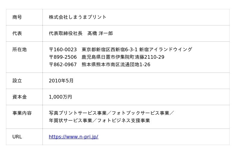 しまうまプリントは「すべての想いを身近に 時をつなぐ会社になる」というミッションのもと、ネットプリント専業で「しまうまプリント( https://www.n-pri.jp/ )」サービスを運営している企業です。
