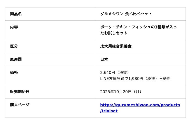 株式会社リンクォール(本社:愛知県名古屋市)は、愛犬の健康と食の楽しみを両立させた総合栄養食のフレッシュドッグフード「gurumeshiwan(グルメシワン)」を2025年10月20日(月)より販売開始しました。