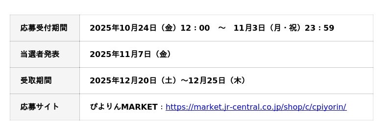 ジェイアール東海フードサービス株式会社(本社:愛知県名古屋市、代表取締役社長:岩下賢一)は、人気スイーツ「ぴよりん」の2025年クリスマスケーキの予約受付を開始いたします。