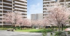 本物件は、長期優良住宅認定を取得予定で、耐震性・省エネ性・維持管理の容易さを備えた“安心して長く住み続けられる住まい”を目指しています。さらに、CASBEE(建築環境総合性能評価システム)Aランクを取得し、住棟でのZEH-M Oriented(ゼッチ・マンション・オリエンテッド)認証も取得予定です。環境性能に優れた住宅として、持続可能なまちづくりに貢献し、将来的な価値にも寄与する取り組みを行います。根川さくら通りに接する住棟からは春の桜並木を間近に楽しむことができ、季節の彩りを日常に取り込めます。敷地内には、春を象徴する「サクラノソノ」「サクラリング」(次項完成予想CG参照)をはじめ、イチョウゲート(秋)やフォレストプロムナード(夏)などを配置し、四季を通じて自然を感じられる街づくりを推進します。敷地の約1haを公園や遊歩道として整備し、地域に開かれた潤いある環境を形成します。