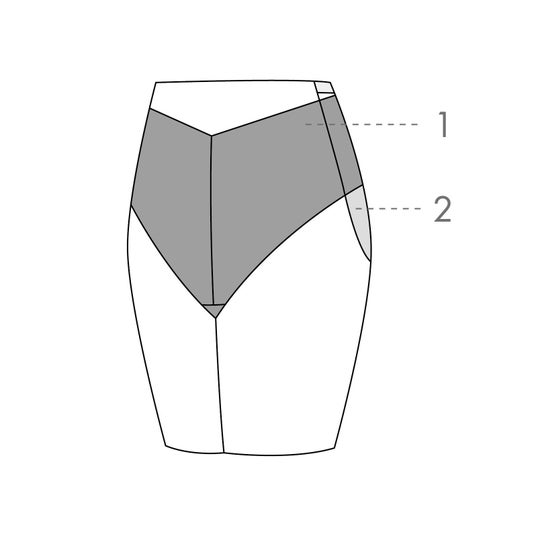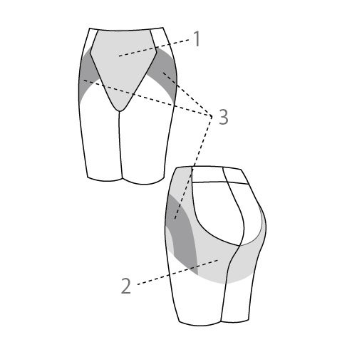 3.骨盤部分にパワー感のあるあて布をあしらいしっかりサポート。