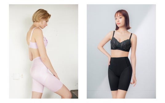 (左)「ワコール」ブランド[ボディシェイプガードル 骨盤サポート]品番:GRC500 カラー:PI (右)「ウイング」ブランド[骨盤ささエール]品番:KQ2730 カラー:BL