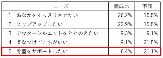 サポートショーツ・ガードルのニーズ調査(上位5位)