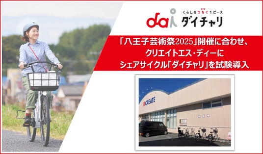 エネルギー・住まい・暮らしの総合サービス事業を展開するシナネンホールディングス株式会社(本社:東京都品川区、代表取締役社長:中込 太郎)の子会社で、移動を楽しく、快適にするシェアサイクル「ダイチャリ」を運営するシナネンモビリティPLUS株式会社(本社:東京都品川区、代表取締役社長:菅原 健)は、「八王子芸術祭2025」開催に合わせ、東京都八王子市内に、二次交通の確保による観光周遊性の向上を目的としてシェアサイクル「ダイチャリ」を、11月4日(火)より、ドラッグストア「クリエイトエス・ディー 八王子中野上町店」に新規導入したことをお知らせいたします。