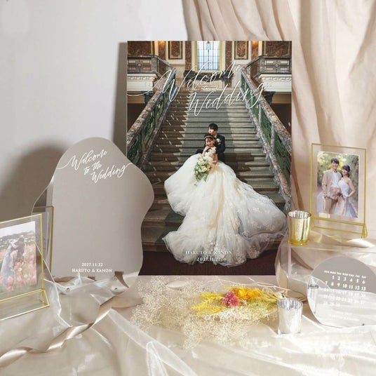 「ウェルカムスペース、どうしよう…?」そんな花嫁の悩みを解決。人気2アイテムがセットになった“届いてすぐ飾れる”理想の受付スペース演出。