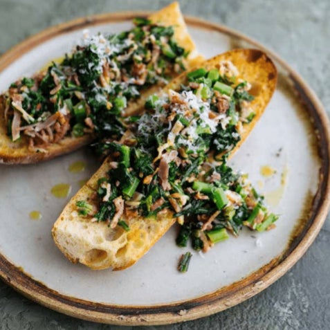 <不眠・落ち込み>春菊とアーモンドのクロスティーニ