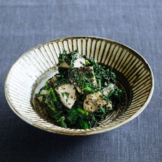 <冬>サトイモと春菊の黒ゴマサラダ