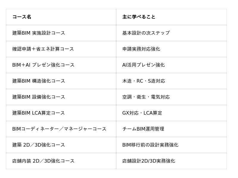 以下、多数のオプションコースをご用意しています。詳しくはBIM講習の詳細ページをご覧ください。