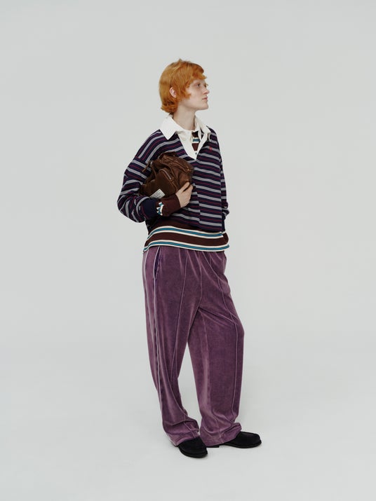 今季は、ヴィンテージやアメリカンカジュアルを再解釈した「Oblique AMERICAN LEGACY」がテーマです。あらゆるスタイルの女性が心地よく着られるようにデザインし、ワークやスポーツ、ミリタリ ーのディテールを現代的にアレンジし、日常的でありながら、自由な感性で再構築して仕上げました。 デニム、レザー、スウェットを中心に、サイズ感・着丈・素材に複数のバリエーションを提案いたします。ヴィンテージのようなこなれたムードが漂うスウェット、目を惹く冬の綺麗カラーで仕上げたヘリンボーンテープ付のセーターや、タックボタン、リベット、レザーパッチはすべてオリジナルで製作したこだわりのアソートワイドパンツ等、全 13 型の豊富なラインアップを展開します。