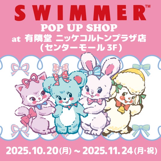 アイピーフォー株式会社(本社:東京都豊島区、代表取締役社長:小濱 剛)がライセンスを取り扱っている大人気雑貨ブランド「SWIMMER」のPOP UP SHOPを、2025年11月24日(月・祝)まで有隣堂 ニッケコルトンプラザ店で開催中です!”かわいいがぎゅっ!”とつまったPOP UP SHOPにぜひお越しください♪