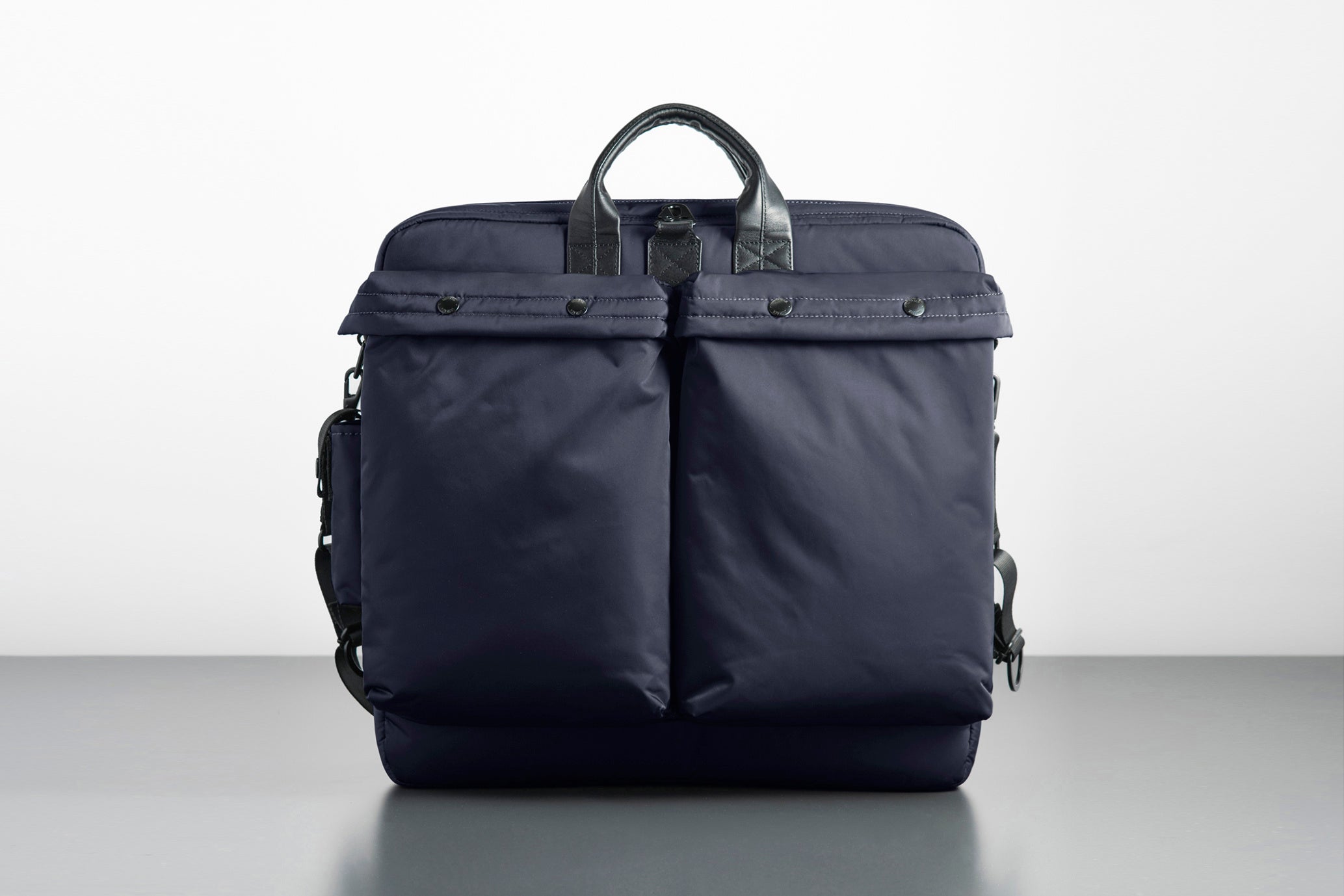 オフだけでなくオンシーンも考慮し、内装に13.3inchに対応するPCスリーブを配置。 モチーフとなったヘルメットバッグ<HGU-56/P> モデルと同様にマチ幅が設けられているため、荷物を入れても型崩れしにくい。