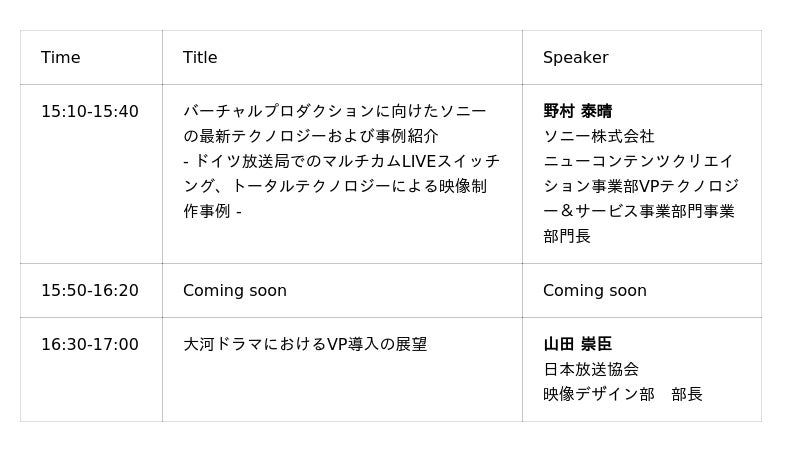 DAY1ではサイバーエージェント、NHK、IMAGICAエンタテインメントメディアサービスなど、業界を牽引する豪華登壇者が集結。NHK大河ドラマにおけるバーチャルプロダクション活用の展望や、サイバーエージェントが独自に取り組むバーチャルプロダクション撮影や背景制作におけるAI活用の取り組みなど、品質と生産性を両立させるための実践ノウハウに迫ります。