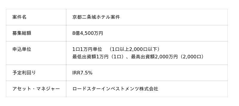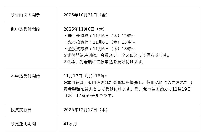 ~11/6仮申込受付開始(予定)、1口1万円から投資申込可能~
