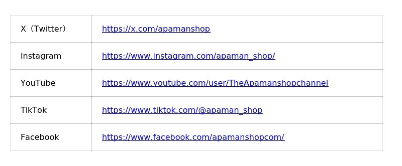 Tel: 0570-058-889 Mail: pr@apamanshop.co.jp