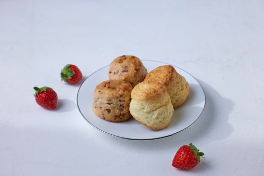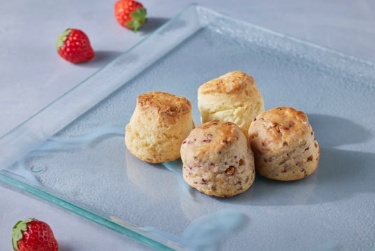 その日の朝に作るヨーグルトとバターミルクで仕上げたこだわりのスコーンは、プレーンと苺&アプリコットの2種類をご用意。フリーズドライ苺やキャラメリゼしたアーモンドを練り込み、香ばしさと果実味を感じる豊かな風味に仕上げました。
