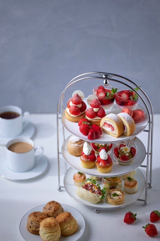 シェフが手がける繊細なデザートの数々と、豊かなバリエーションのセイボリーが織りなす、平日だけの特別なストロベリーアフタヌーンティー。心を解きほぐすようなラウンジの空間で、季節の果実がもたらす華やかなティータイムをご堪能ください。