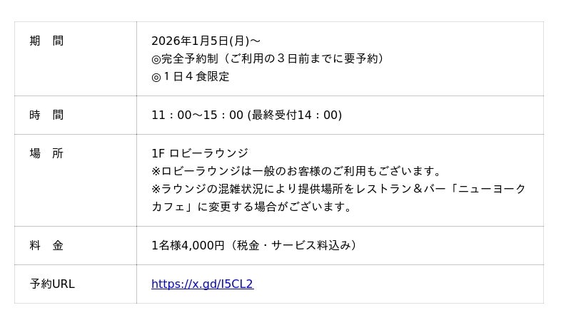 オリエンタルホテル広島(所在地:広島県広島市中区田中町6-10、総支配人:上野 裕二)の1F ロビーラウンジにて、2026年1月5日(月)より新アフタヌーンティー「ルージュ&ショコラ アフタヌーンティー」を1日4食限定でご提供いたします。